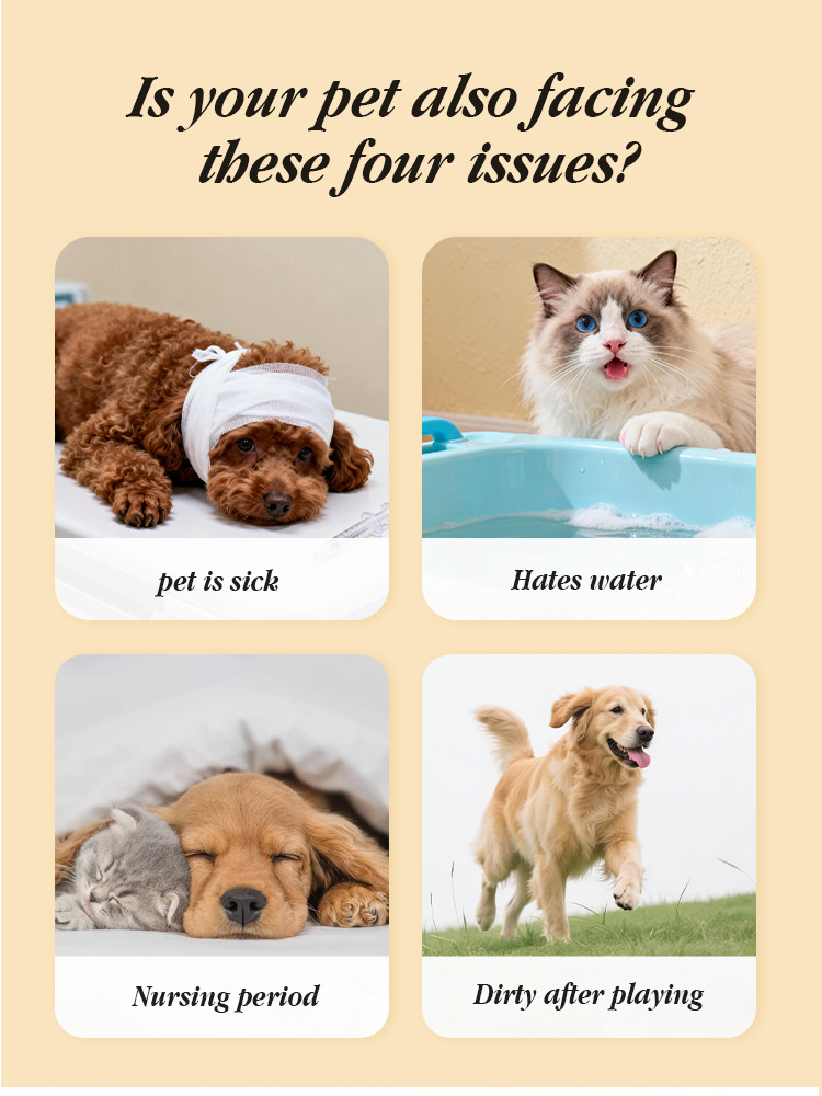 🚿 **No-Rinse, No Fuss:** Skip the stressful baths! Just wipe your pet down—no water, no blow-drying, no mess. Ideal for pets who hate water, sick or nursing pets, post-walk cleanups, and travel.