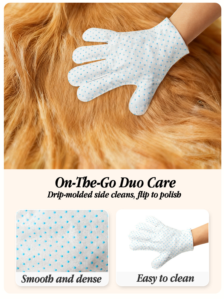 🧼 **Dual-Sided Care for All Needs:** The textured surface effectively removes stains, debris, and dander, while the gentle, moisturizing side nourishes skin and coat. Perfect for quick touch-ups or full-body cleaning.