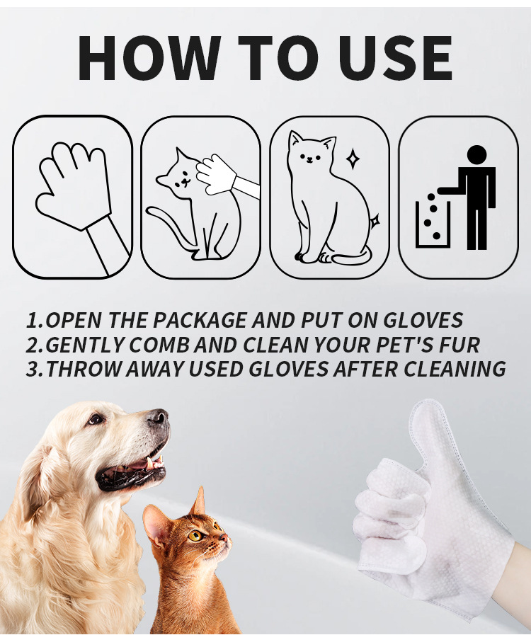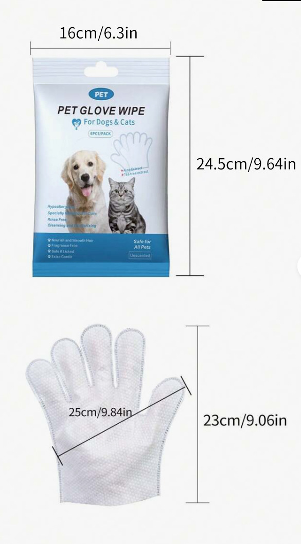 90g/m² Thickened Pet Glove Wipes 6PCS | Hypoallergenic, Bulk Wholesale & OEM Available